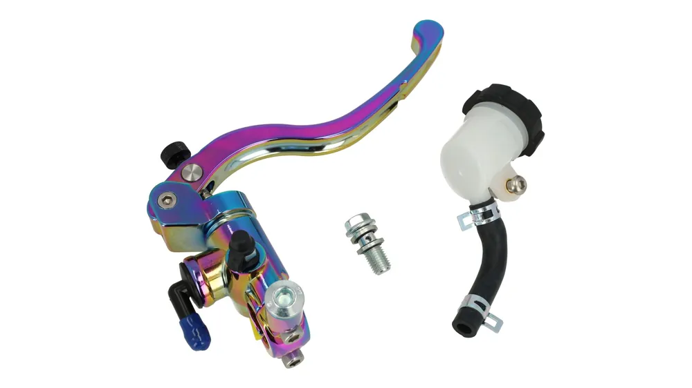 Die Bremspumpe ist universell einsetzbar und eignet sich für Roller, Motorräder, Pit Bikes und viele weitere Fahrzeuge. Der einstellbare Bremshebel lässt sich optimal an Handgröße und Fahrstil anpassen. Die auffällige Neochrome-Optik unterstreicht den klaren Racing-Charakter.